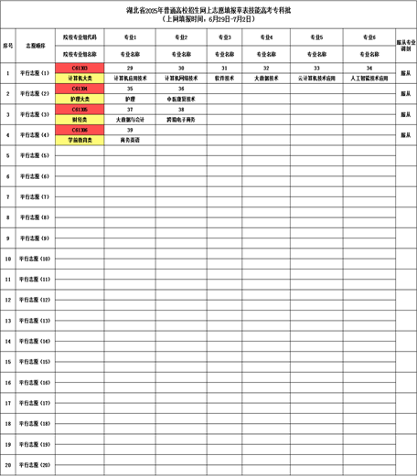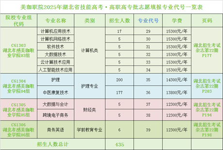 第一步:查计划填草表。技能高考高职高专批考生可在2025年《湖北招生考试》杂志第22期中查询招生计划。我校计算机类在杂志177页、护理专业在杂志203页、财经类在杂志在194页、学前教育类在杂志198页。